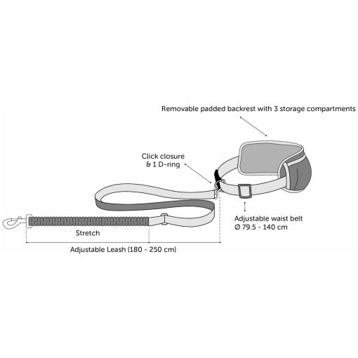 Längd 155-250 cm, bälte 79,5-140 cm
