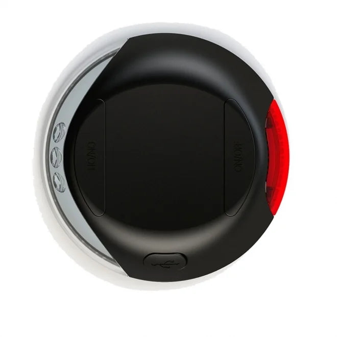 Lampan laddas via USB - laddningskabel ingår. Ett rött ljus lyser under laddningen och släcks när batteriet är fullt.