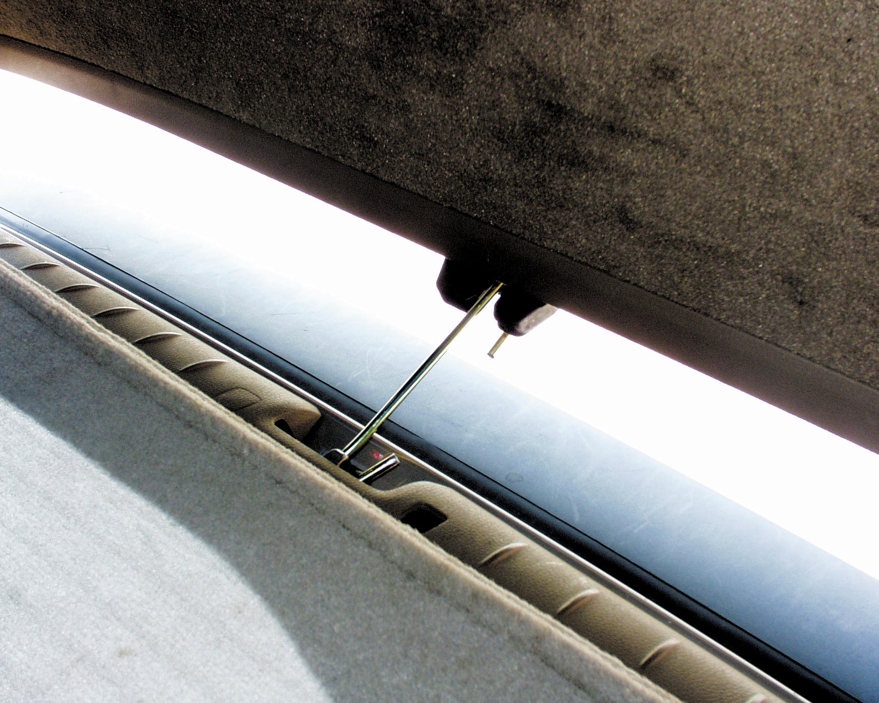 Ger möjlighet till frisk luft åt hunden samtidigt som bilen kan förbli låst. Metallkroken håller bakluckan öppen men ändå låst. Kort, smidig modell som endast lämnar en liten öppning.