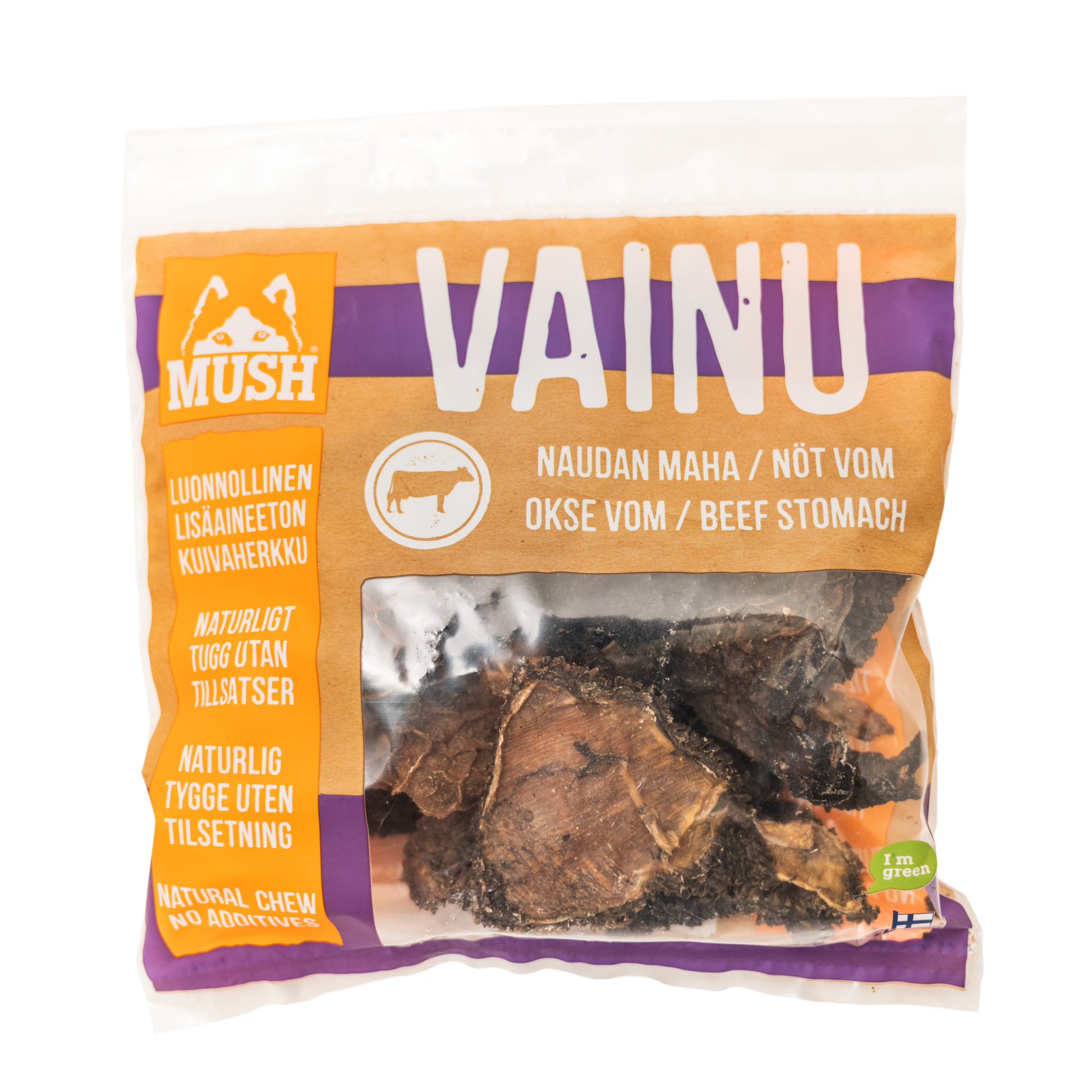 MUSH VAINU® Nötvom lämpar sig på grund av sitt format i remsor förvånansvärt bra även till husdjur med mindre munnar. Vomremsorna kan åtnjutas på många olika sätt, till exempel genom att snabbt mumsa i sig eller långsamt suga på. Vomremsorna lämpar sig även bra som tidsfördriv för katter med kraftiga käkar.