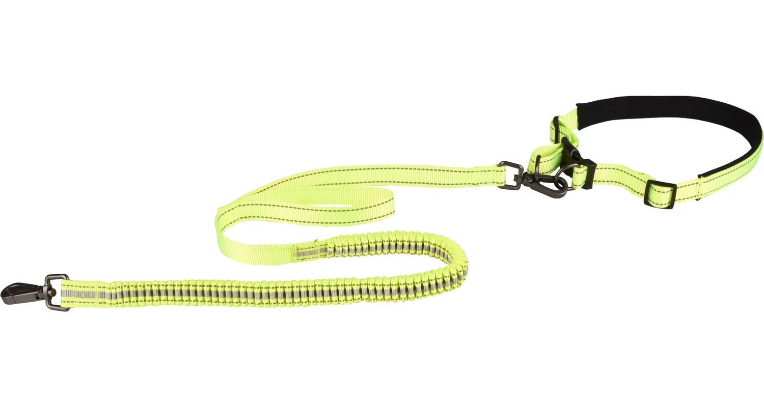 Detta praktiska löpbälte är lämpligt för handfria promenader eller sporter med din hund. Utrustat med 2 starka D-ringar för fastsättning av koppel med karbinhake, vadderat ryggstöd för extra komfort, justerbart midjespänne och därför lätt att sätta på och ta av bältet, starkt stötdämpande koppel med praktisk ögla för ökad säkerhet. Bälte och koppel är ytbehandlade med reflekterande material.