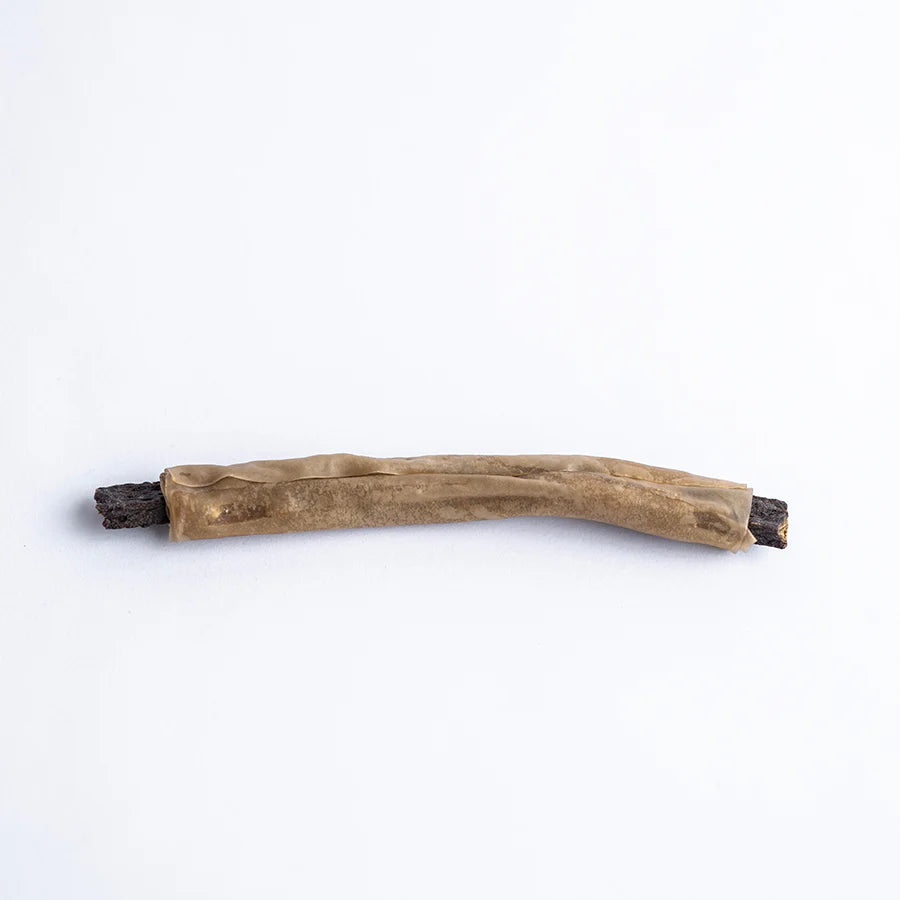 Ett tuggben tillverkat av renskinn och fyllning av torkat nötkött från Sverige.