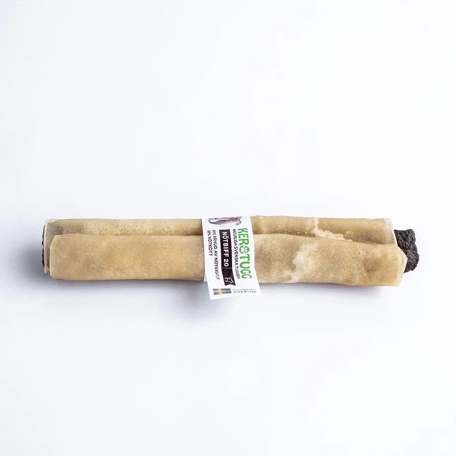 Hålbart tuggben tillvekat av Svenskt nötskinn med en härlig fyllning av torkat nöthjärta.