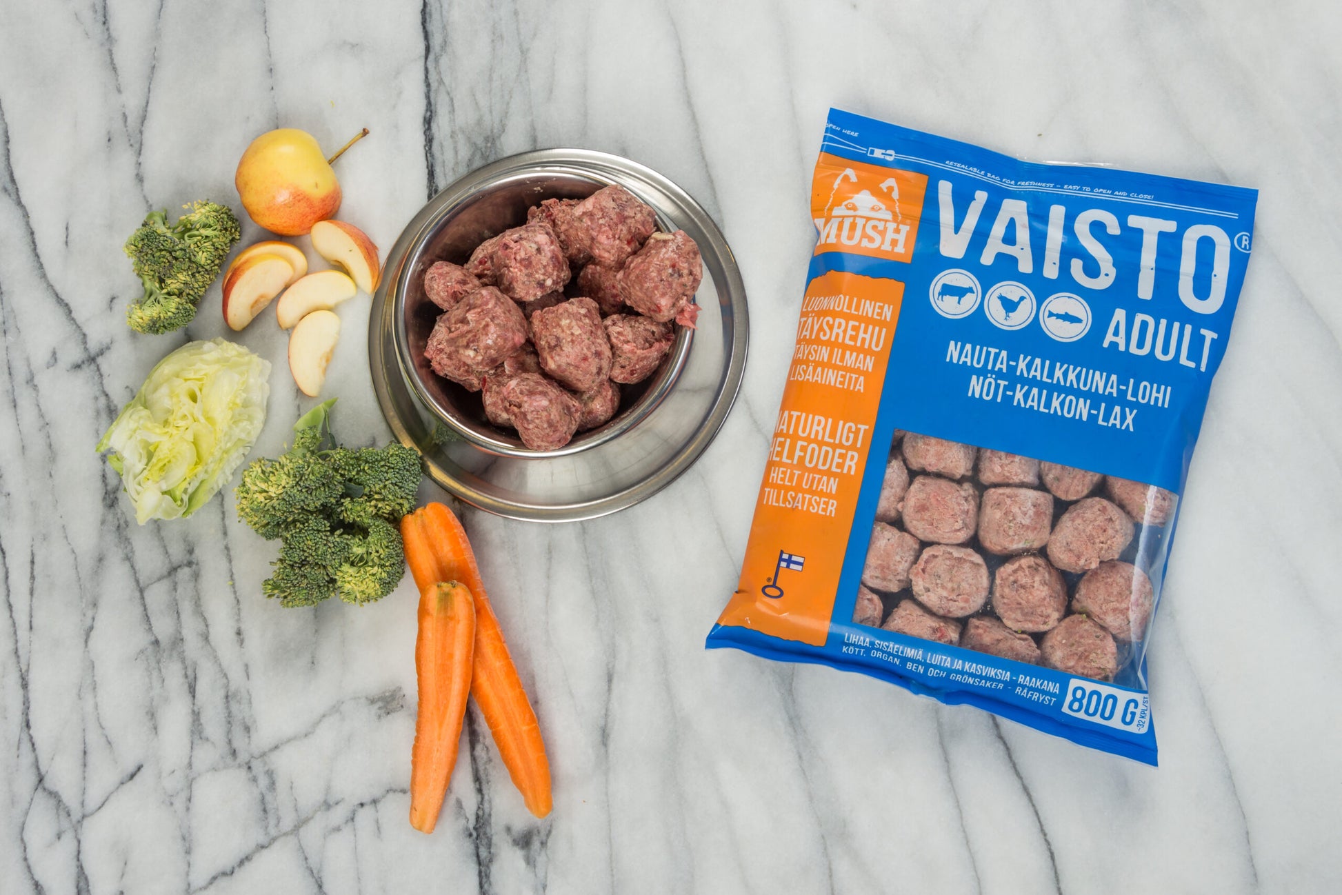 Vaisto-produkterna är helt fria från tillsatsämnen, alla näringsämnen som behövs kommer från de förstklassiga, huvudsakligen finländska råvarorna och av den här orsaken har vi inte ens tillsatt vitaminer! Råvarorna har också processats så lite som möjligt, de levereras till oss, vi mal, blandar och fryser in dem. Mer behöver de inte behandlas.