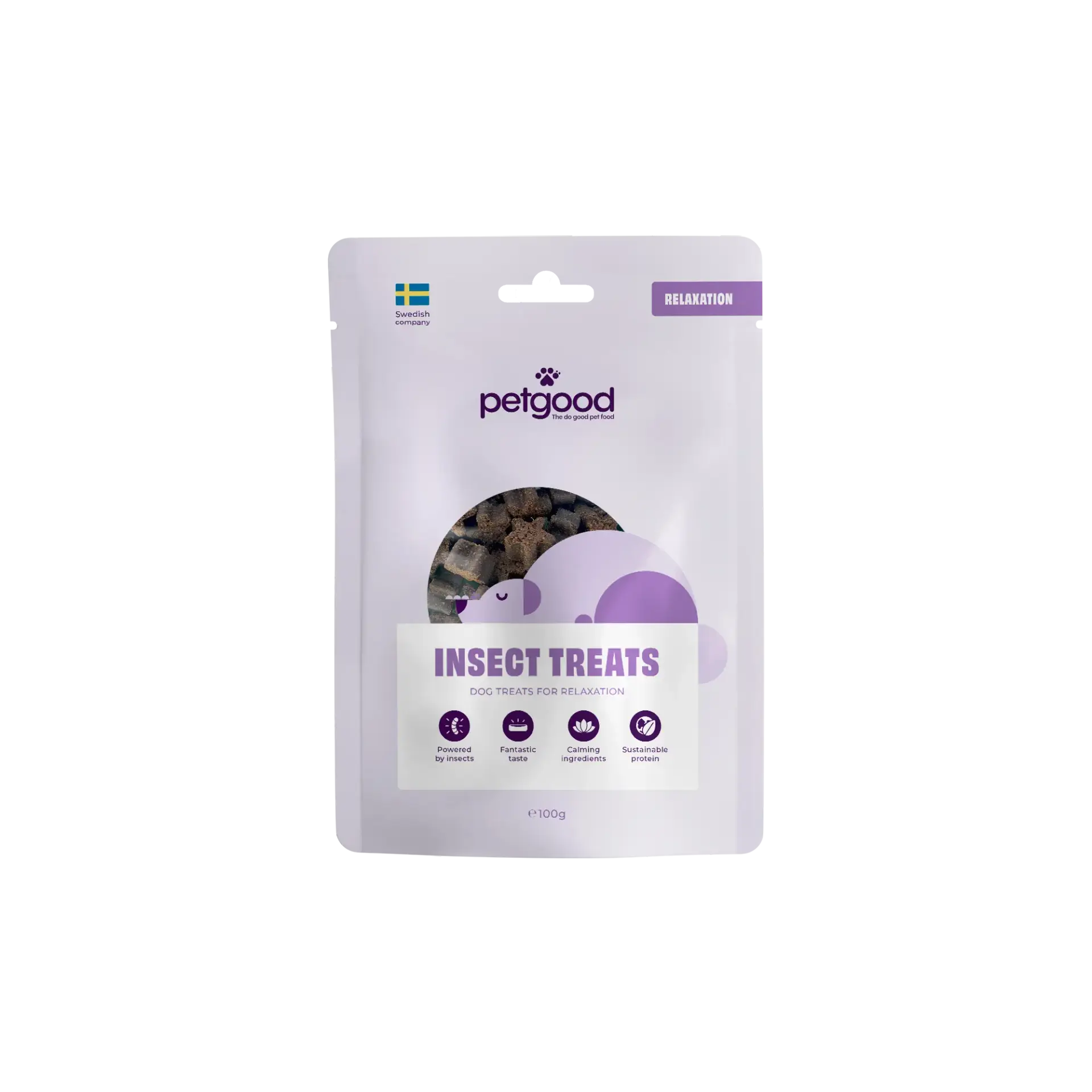 Precis som alla våra produkter är grunden i vårt funktionella godis näringsrikt insektsprotein. Ingredienserna B-vitamin, tryptofan och passionsblomma bidrar med näringsämnen som kan ge en avslappnande effekt, och tillskott av magnesium stöttar återhämtning av hundens muskler och nervsystem.