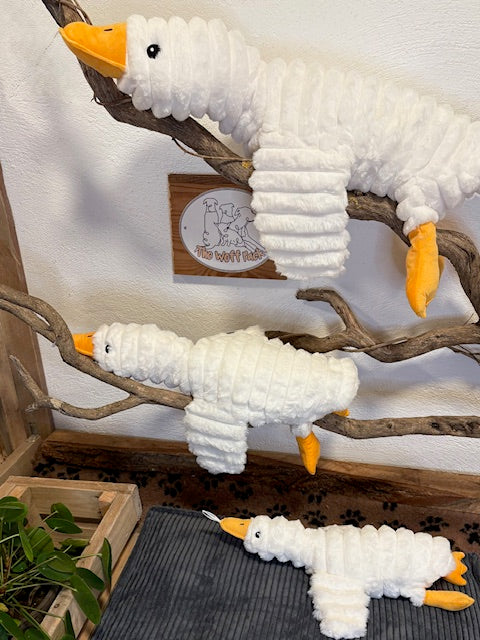 En gosig vän för hundar i alla storlekar! Hundgosedjuret Goose är mjukt, slitstarkt och har ett glatt pipljud. Finns i tre storlekar, vilket gör den perfekt för små, medelstora och stora hundar.