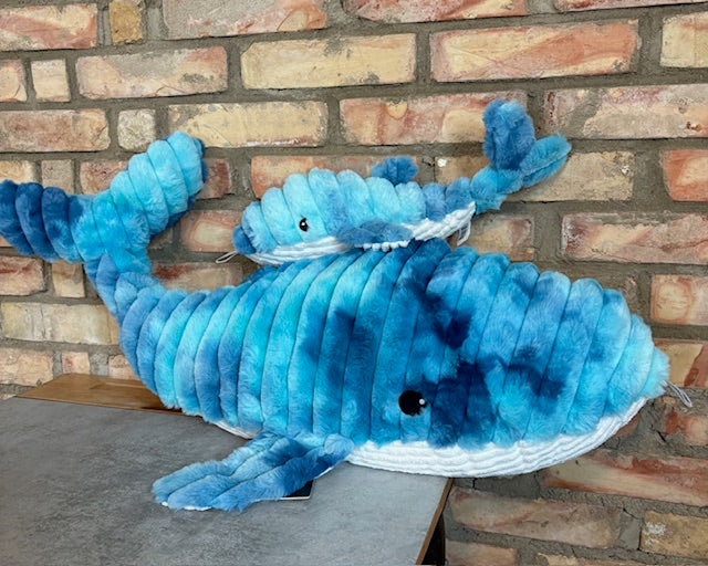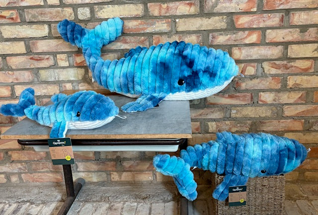 Quapas! Hundgosedjur Whale kombinerar mjuk plysch med lekfulla detaljer som skrynkliga fenor och en inbyggd pipljud. Finns i flera storlekar.