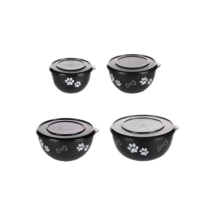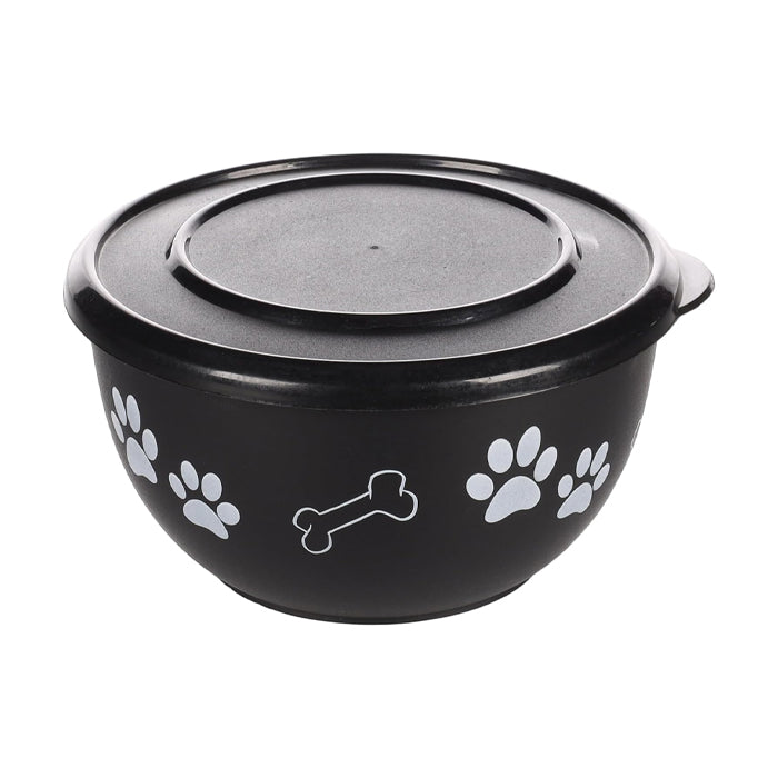 • Kena-bricka med lock för hundmått: ø17,5 cm. innehåll 1250 ml. Höjd: 8 cm i rostfritt stål. svart färg. med ben och ben idealisk för förvaring av BARF