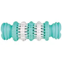 Trixie Denta Fun Rulle är en tuggleksak tillverkad av slitstarkt naturgummi. Leksaken har en mild mintsmak och är försedd med mjuka skåror och piggar i olika storlekar som masserar tandköttet. Rullen är rolig att tugga på och att leka apportlekar med.