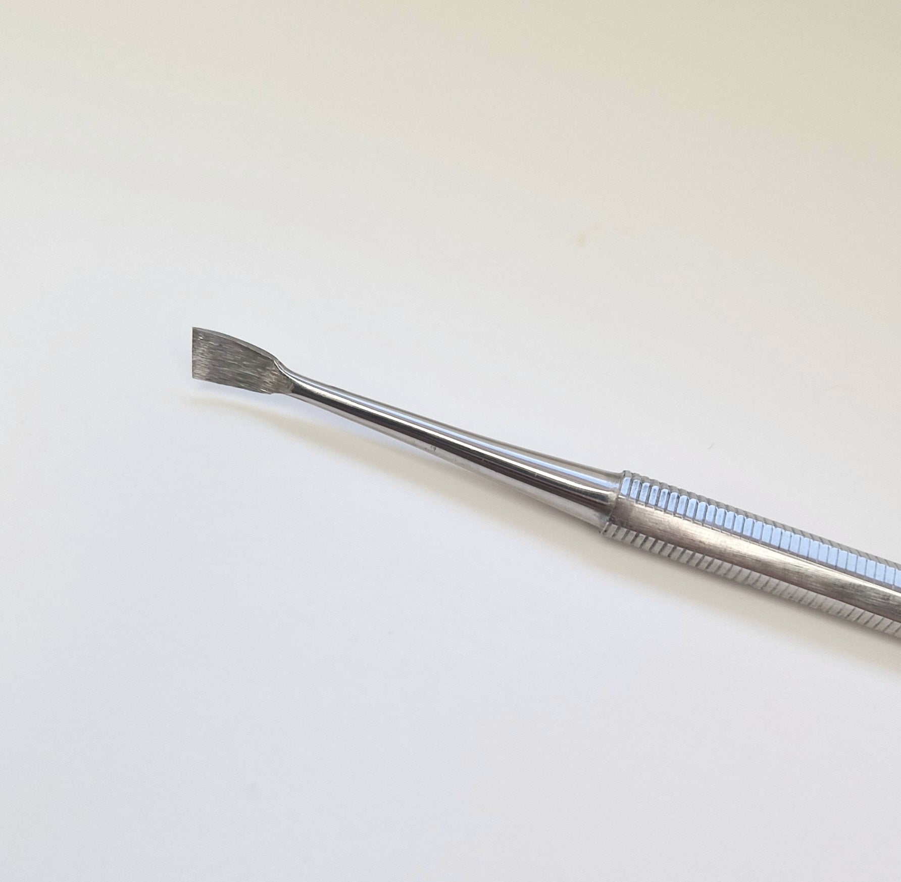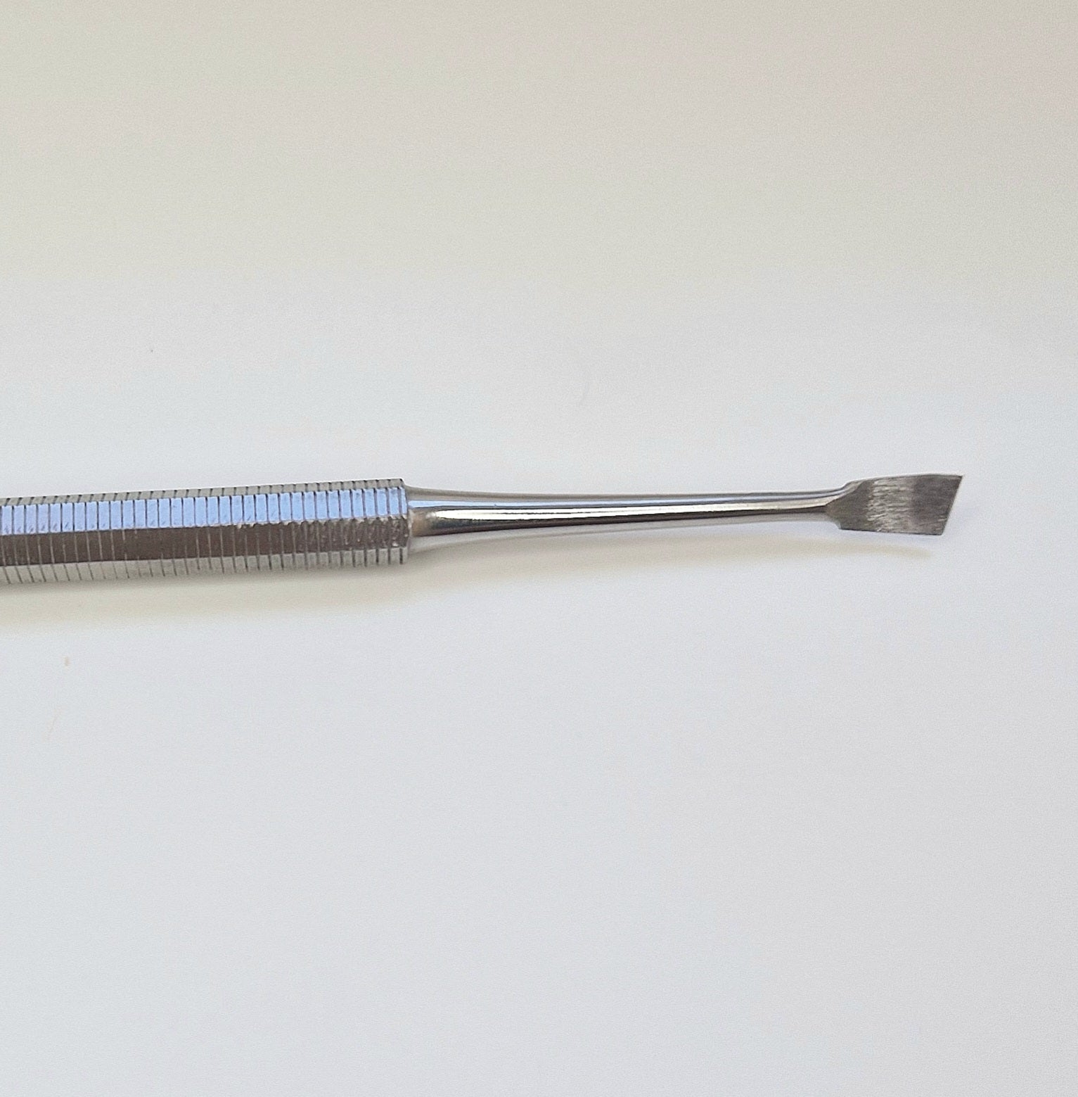 Tandstensskrapa i metall som kan användas för borttagning av tandsten hos hund. Använd som ett komplement till den dagliga munhygienen för hund.